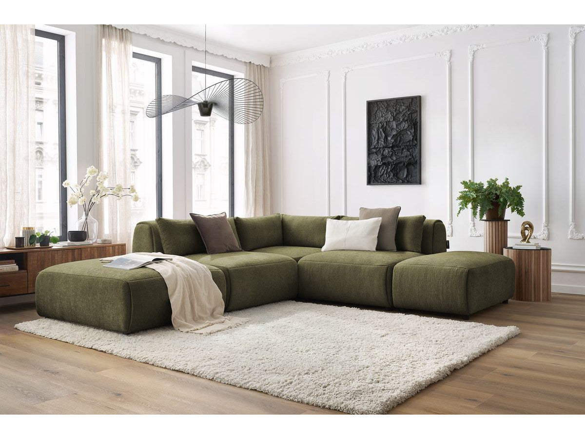 Ce canapé d’angle spacieux combine design minimaliste et confort absolu. Avec sa structure modulaire, il s’adapte facilement à votre intérieur et peut être réagencé selon vos besoins. Son revêtement en tissu beige clair apporte luminosité et élégance à votre salon.