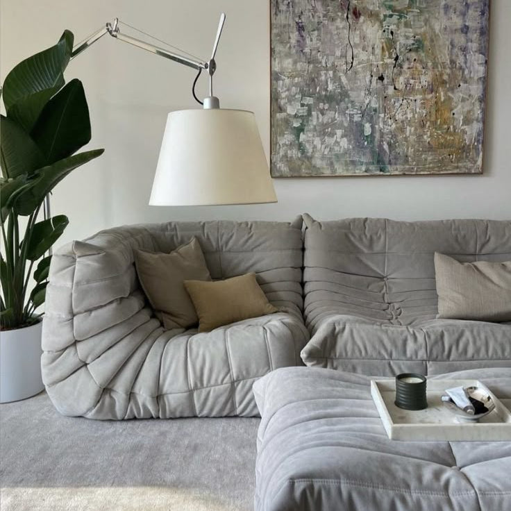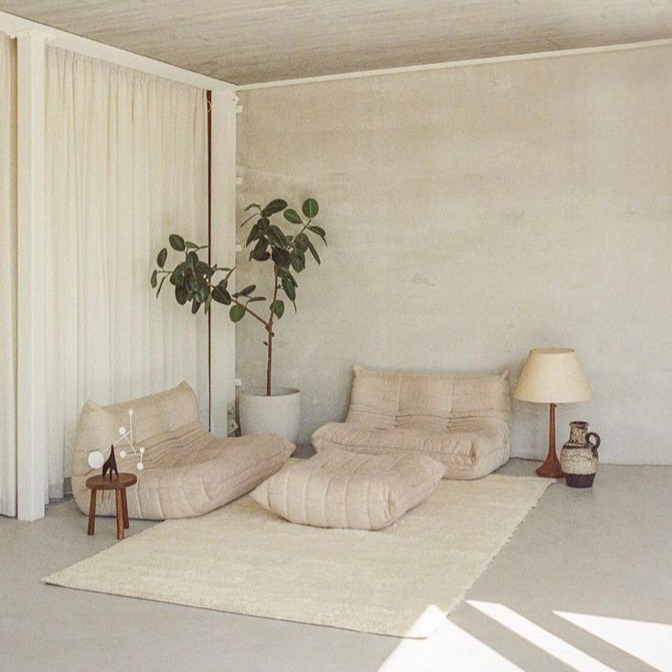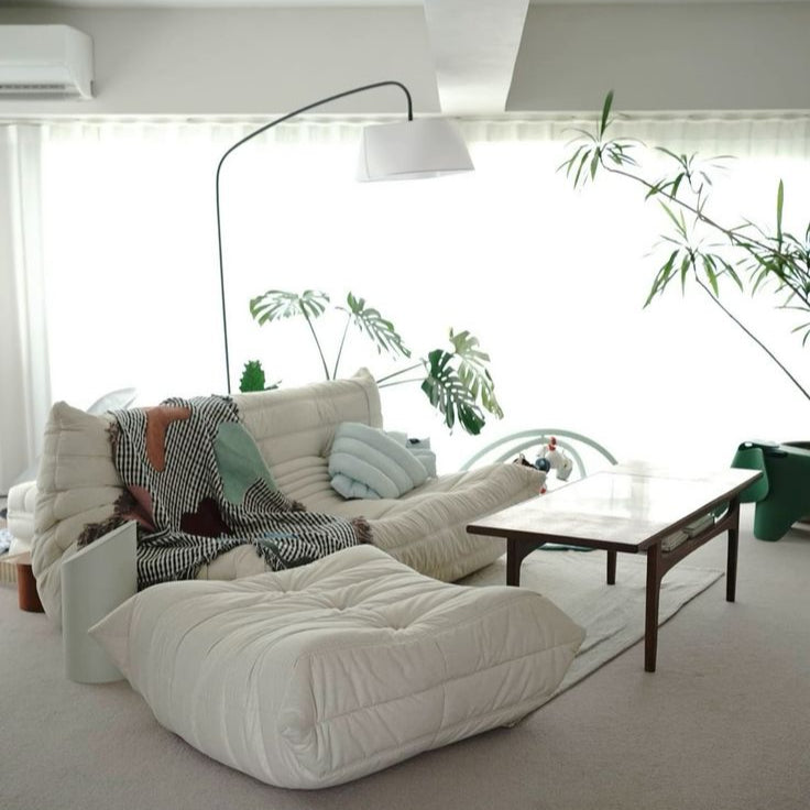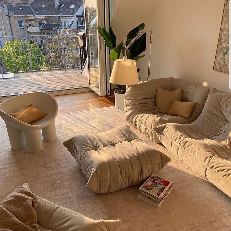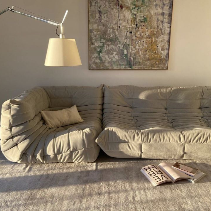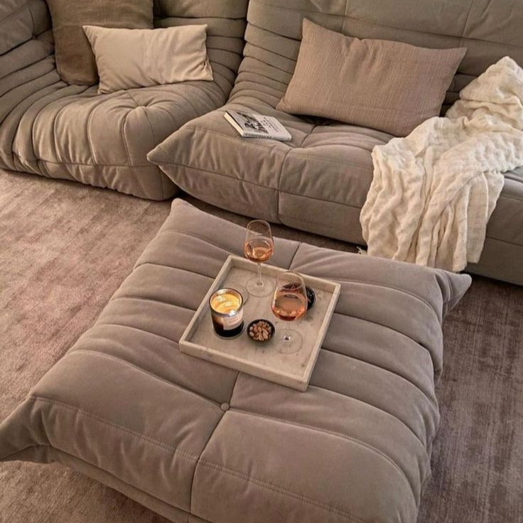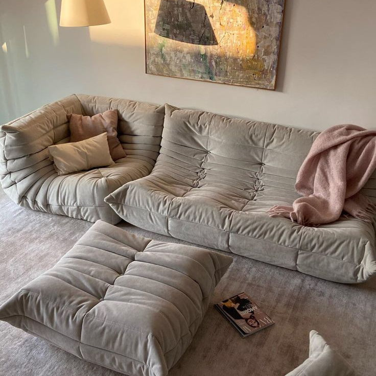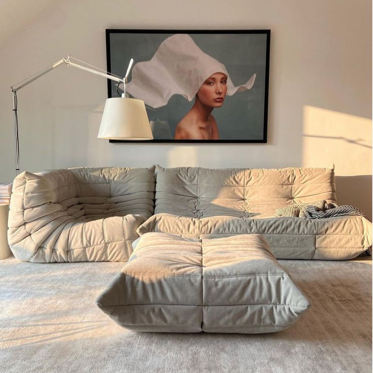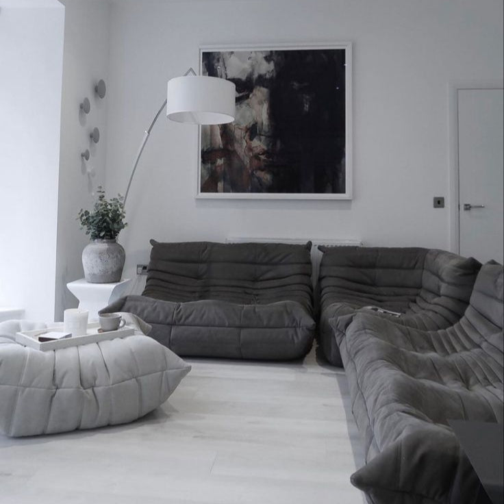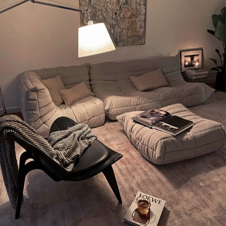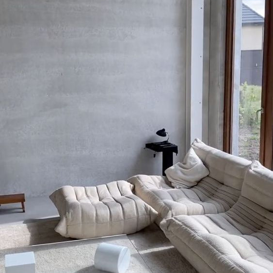 Ce canapé est un modèle iconique de style Togo : bas, confortable et design. Il est constitué de modules indépendants (angle, chauffeuse, pouf) qui permettent de composer différentes configurations selon la taille de votre salon. Son assise profonde et ses lignes capitonnées lui donnent un look moderne et chaleureux, idéal pour un intérieur contemporain.