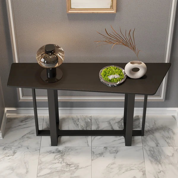 Cette consoler de couleur noir est une touche polyvalente qui convient à n'importe quel endroit de votre maison, du mur d'entrée à l'arrière d'un canapé de salon, en passant par les espaces vides entre les deux. Il est fabriqué de bois MDF et DE métal de qualité supérieure. Définie par ses lignes épurées et son design minimaliste, cette console mince et élégante est le premier choix dans tous les espaces restreints. Il a un design géométrique ouvert et avec sa base métallique unique, il offre plus de force et de style.