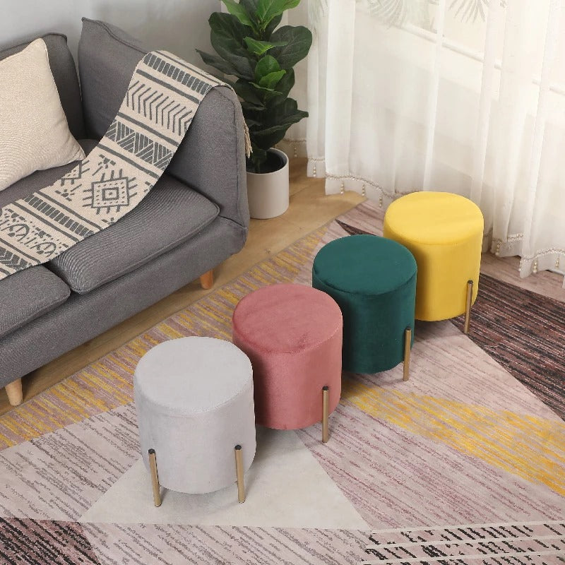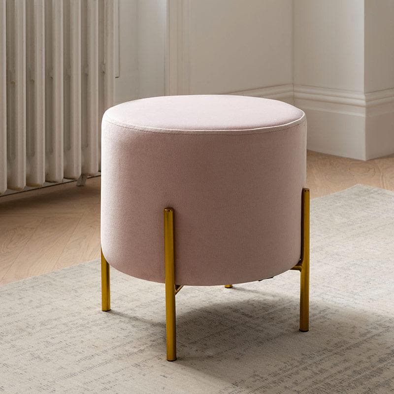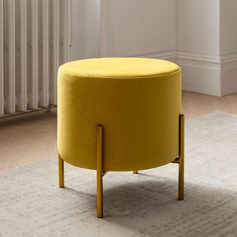 Avec son look contemporain, le pouf en velours et métal doré Européen Rond rejoindra un salon à l'ambiance raffinée et élégante. Monté sur des pieds épingles d'inspiration vintage, il lévitera avec charme autour d'une table basse en marbre ou devant une coiffeuse. Associé à votre luminaire en laiton, l'Européen Rond vous accompagnera dans tous vos moments de détente.