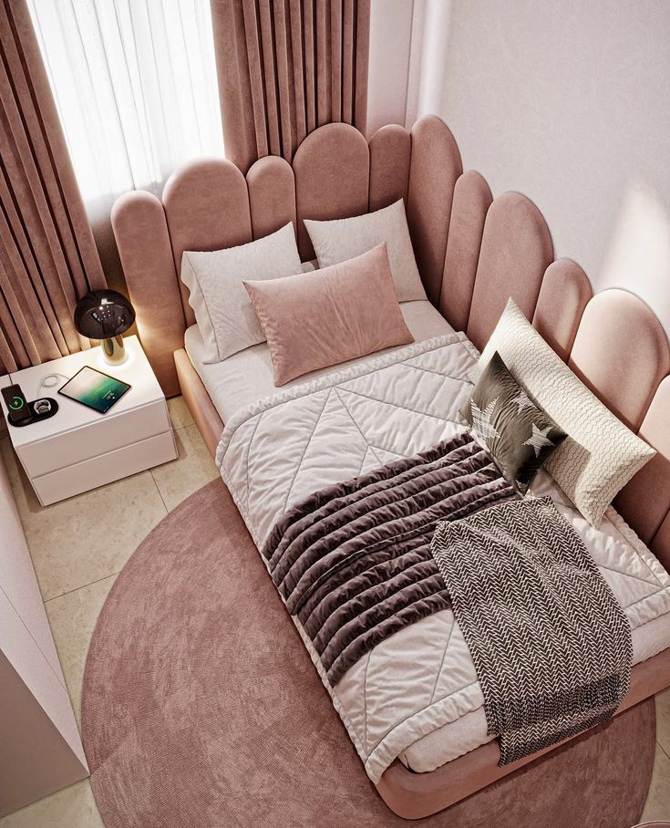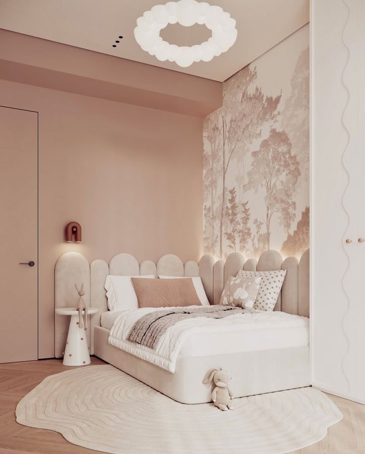 Le lit enfant Nuage Douceur séduit par son design arrondi et capitonné, pensé pour offrir confort, sécurité et élégance. Son revêtement doux aux tons rose poudré et beige crée une atmosphère chaleureuse et rassurante, idéale pour une chambre d’enfant moderne et apaisante.