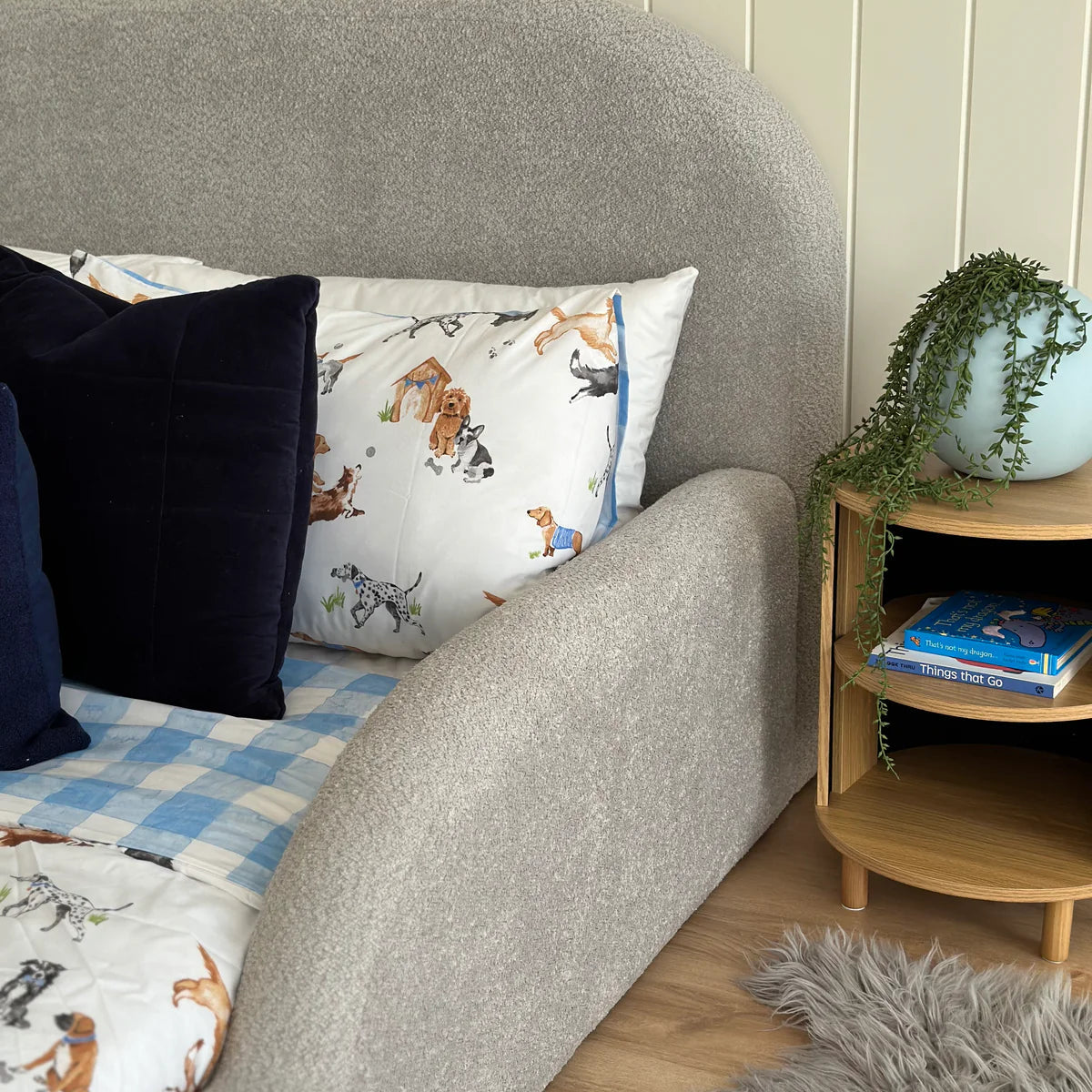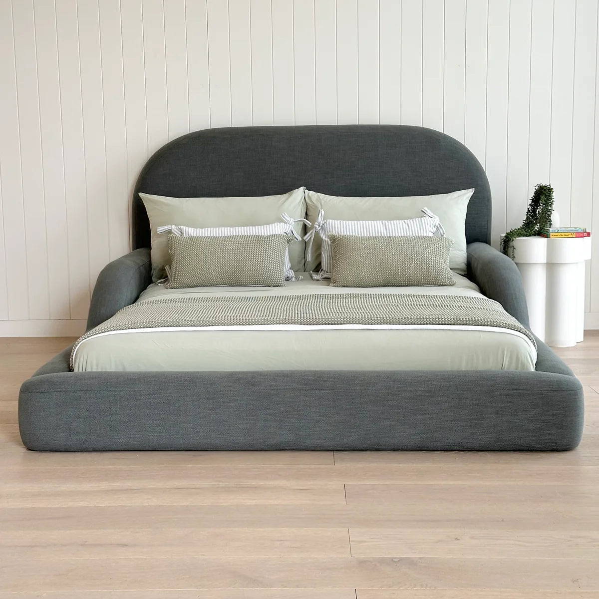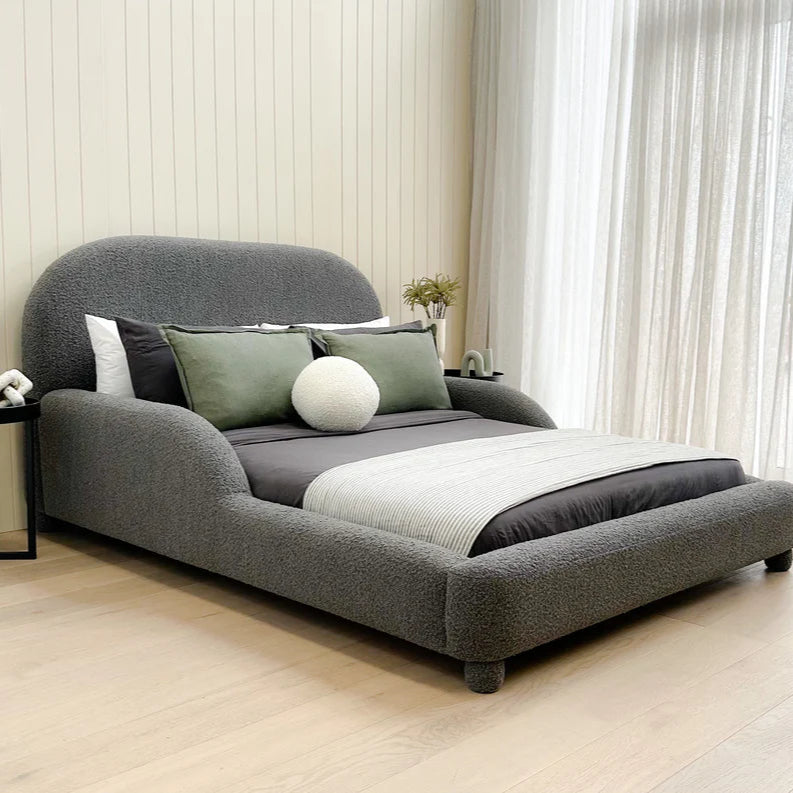 Tête de lit : grande et arrondie, idéale pour s’adosser confortablement.