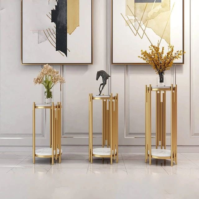 Un ensemble de trois tables gigognes EN MARBRE de différentes hauteurs qui peuvent être affichées ensemble ou séparément si vous le souhaitez ajoutant du glamour à n'importe quelle pièce.