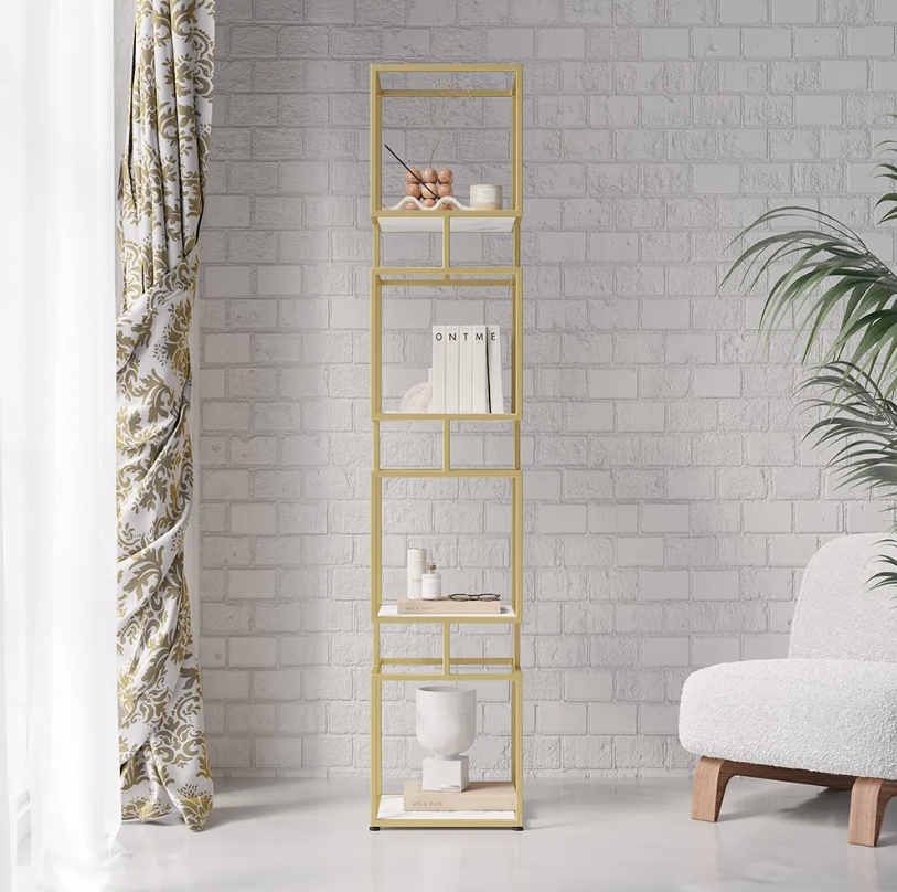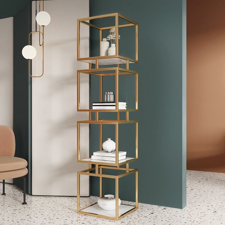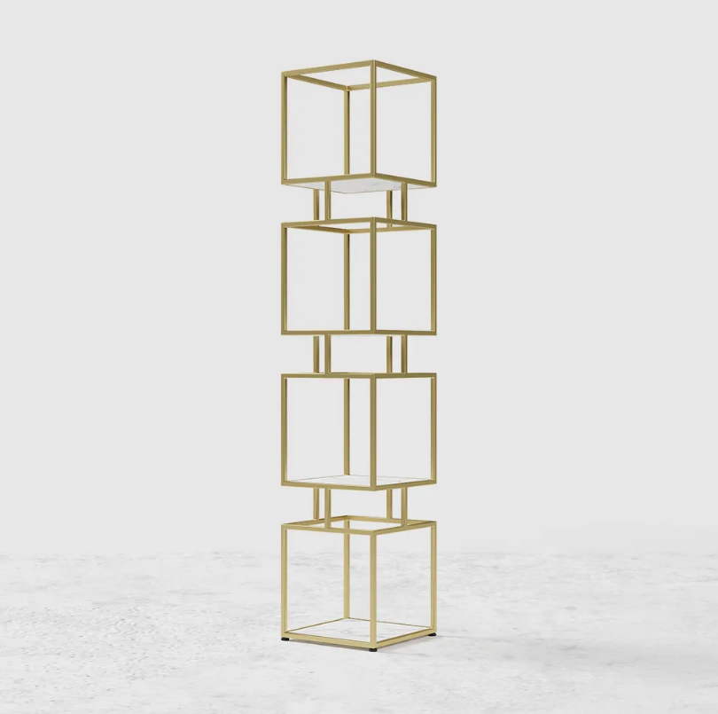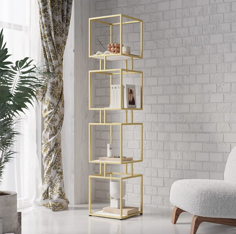 La bibliothèque en métal à magnificence géométrique ne manquera pas de faire sensation dans la maison. Les supports inclinés et les étagères décalées sont accrocheurs et robustes, fabriqués à partir de matériaux de haute qualité pour compléter cette unité. Cette étagère est idéale pour le salon, le lieu de travail ou même la bibliothèque à la maison avec un design d'angle. Stable et durable, il est fabriqué en métal résistant à la corrosion ; il peut être positionné dans l'angle de la pièce.permettant beaucoup d'espace de stockage et d'affichage. H 170CM/40Cm/40CM