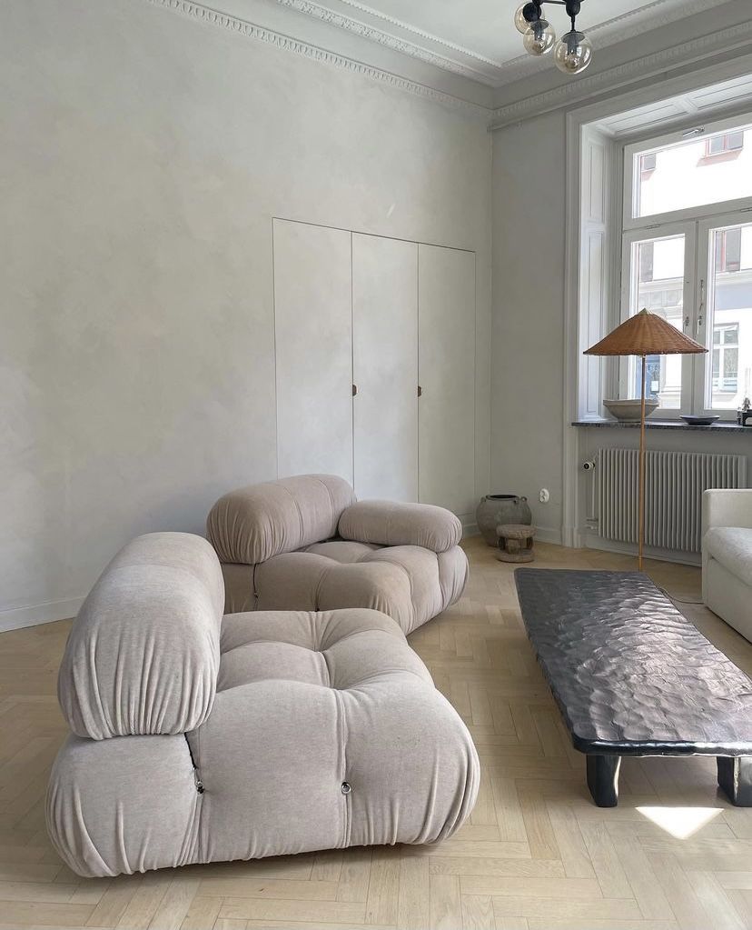 Son assise généreuse et son capitonnage doux créent une sensation enveloppante, idéale pour les espaces modernes, minimalistes ou scandinaves.