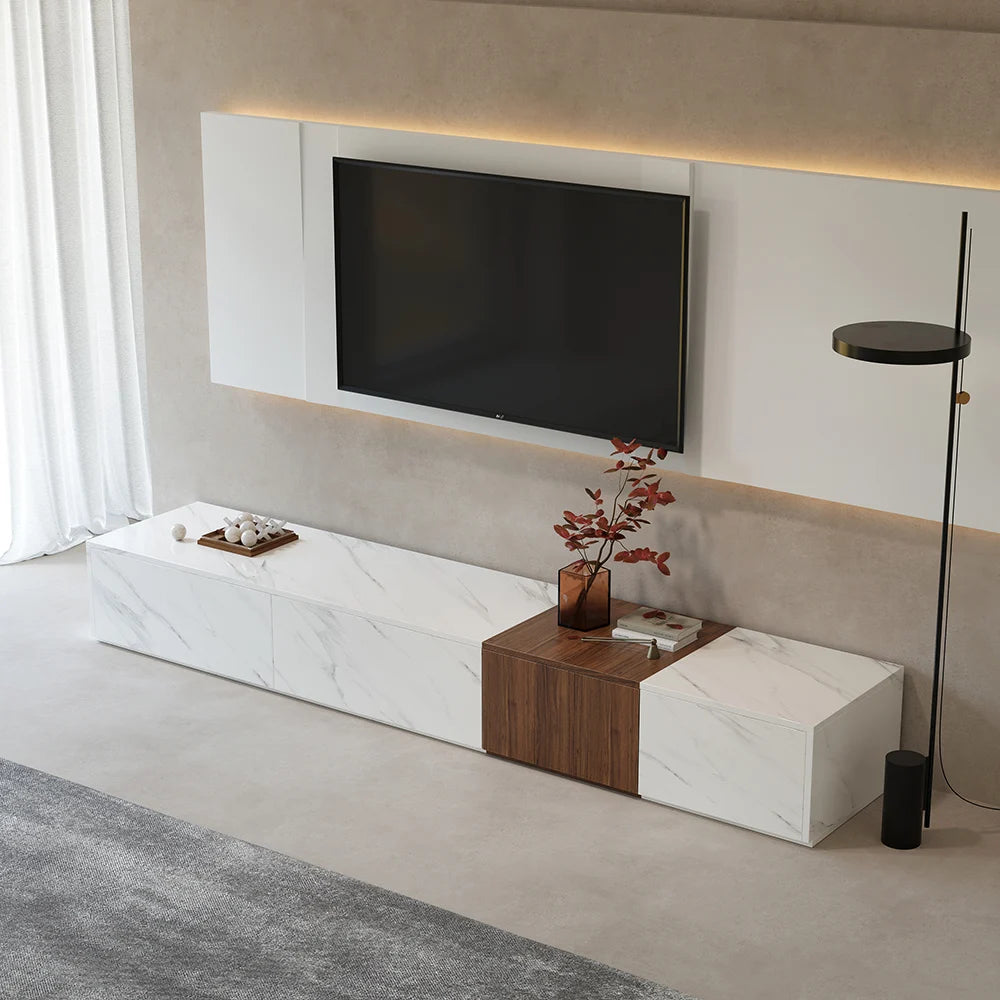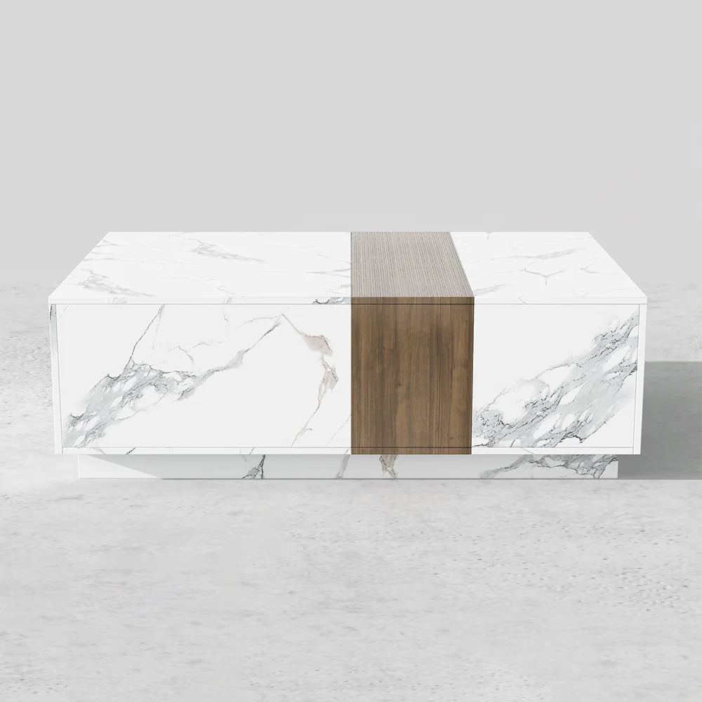La table basse est construite en effet marbre blanc et en mdf noyer et intègre des détails de grain esthétiquement visibles. Il comprend 2 tiroirs spacieux et permet de ranger une large gamme de DVD, de jeux vidéo, de télécommandes, etc. Qu'il s'agisse de déguster des collations et du café ou d'offrir un espace de rangement spacieux, il s'adapte à tous les espaces.