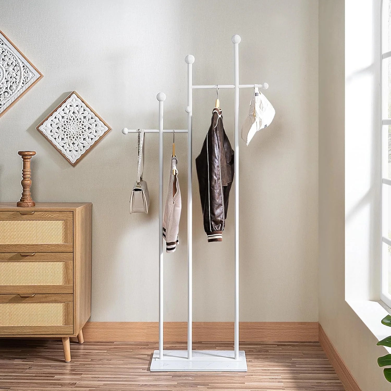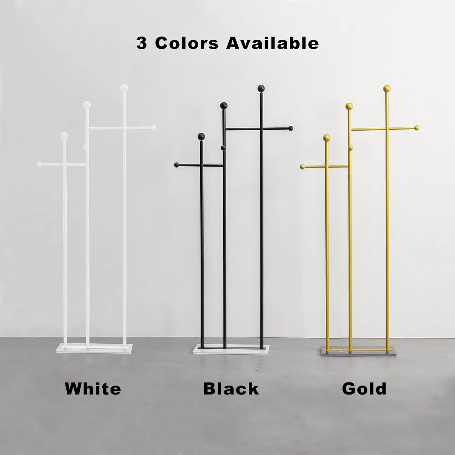 Conçu en métal robuste, il offre une excellente stabilité tout en restant fin et esthétique. Ses bras disposés à différentes hauteurs permettent de suspendre manteaux, vestes, sacs et accessoires avec praticité.